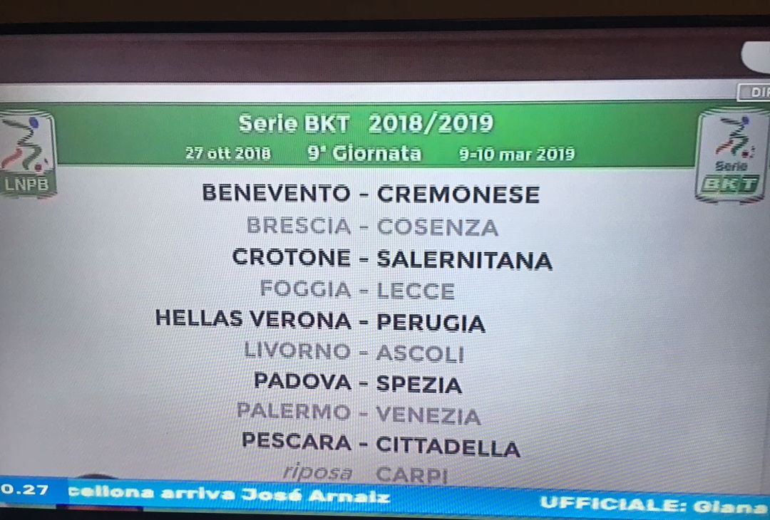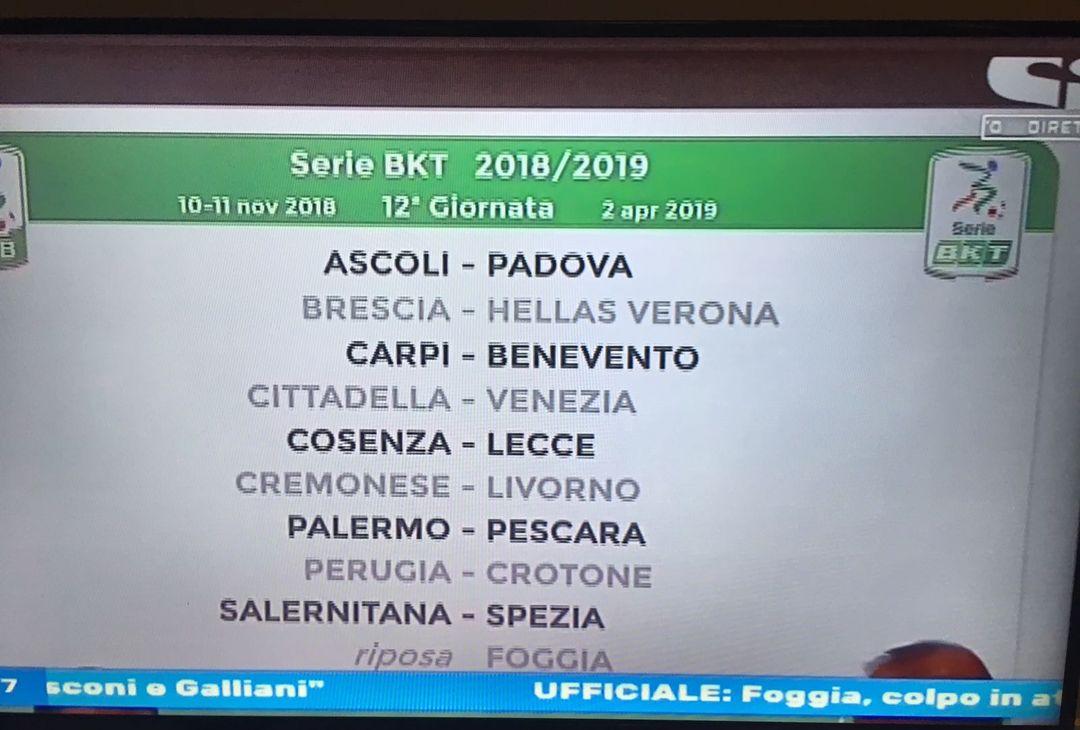 Serie B 2018/19, ecco il calendario completo con tutte le 19 giornate